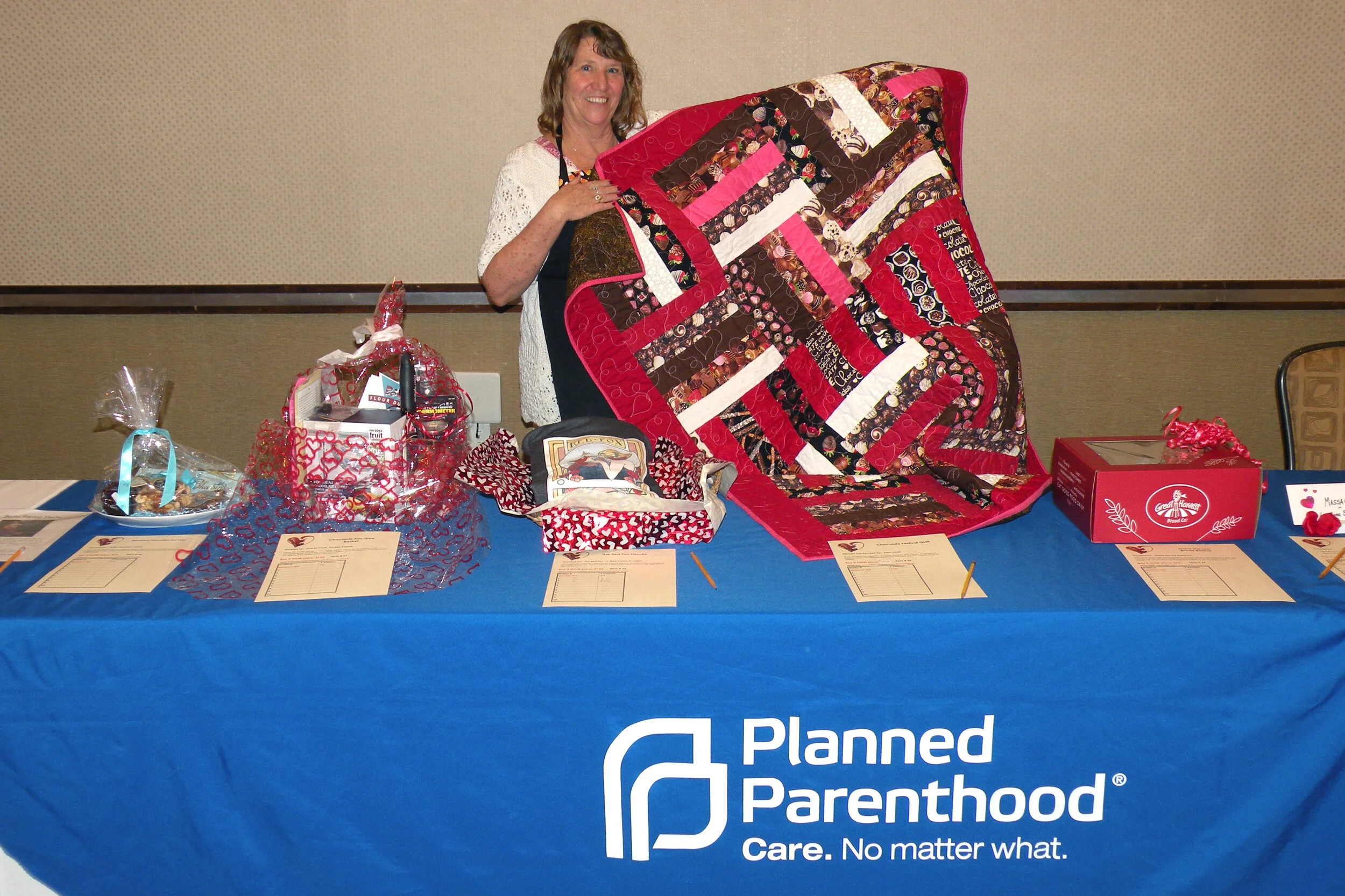The Grand Prize and People’s Choice winners; all Premier Showcase entries; 1st prize cakes, cookies, brownies, chocolates, and potpourri from the Open Contest; and the 1st prize Youth/Families entry will be available for bidding during the Live Auction.