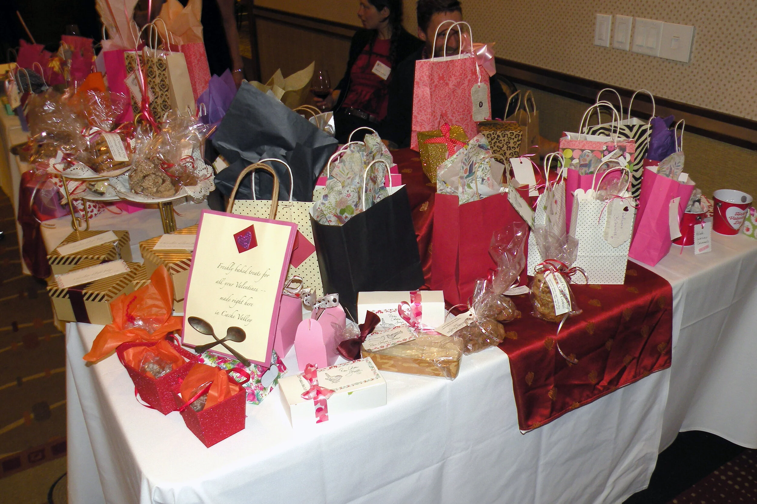 The Grab and Go table will be open throughout the evening or until sold out (which often happens). If you’d like to take home some pretty packages of cookies, truffles, fudge, brownies or other goodies for loved ones, friends, babysitters, or even yourself, this is where you can find them. Grab and Go items, which are made and donated by some of the finest bakers and chocolate makers in the community, are already gift-wrapped and affordably priced, with no need to bid.